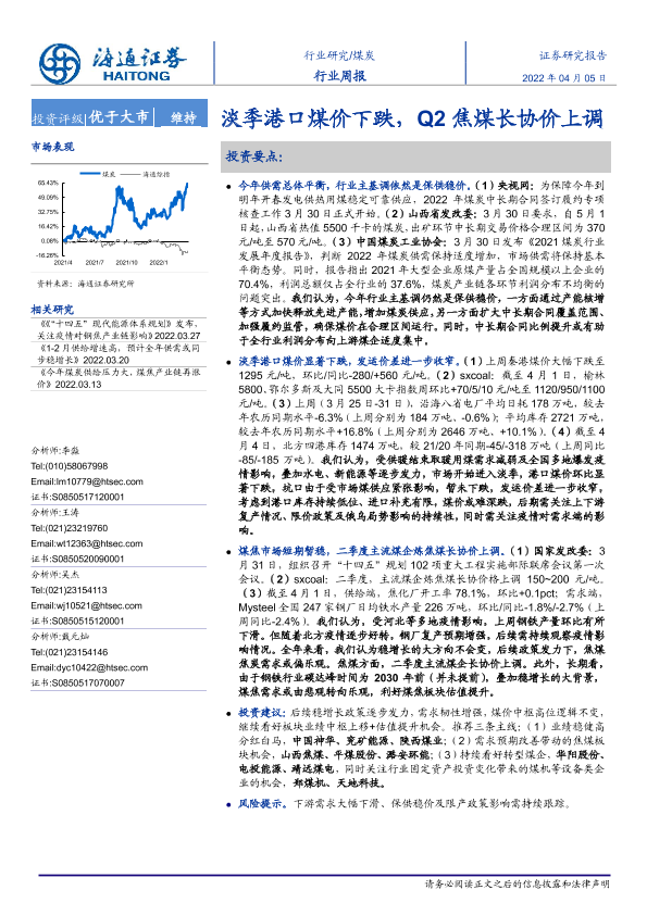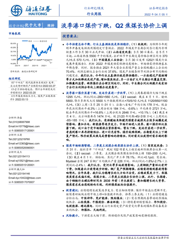 【海通证券】【20220405】20220405-海通证券-煤炭行业周报:淡季港口煤价下跌,Q2焦煤长协价上调-2页