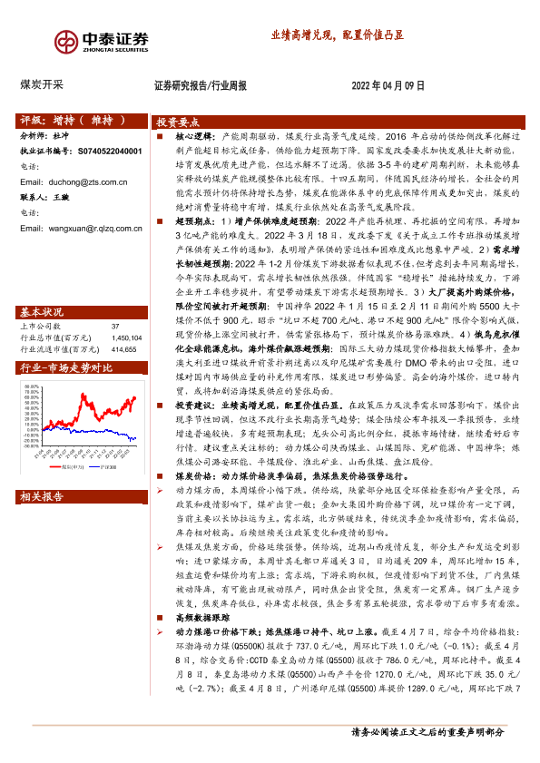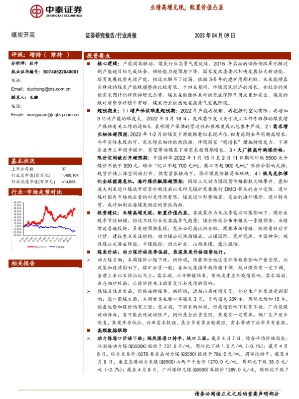 【中泰证券】【20220409】20220409-中泰证券-煤炭开采行业周报:业绩高增兑现,配置价值凸显-24页