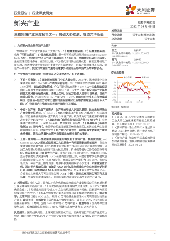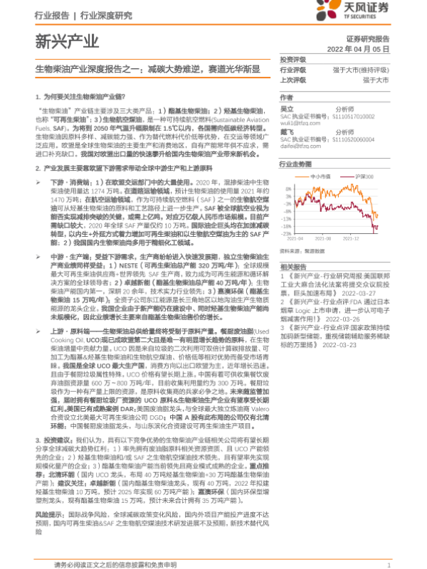【天风证券】【20220405】20220405-天风证券-生物柴油产业深度报告之一:减碳大势难逆,赛道光华渐显-43页