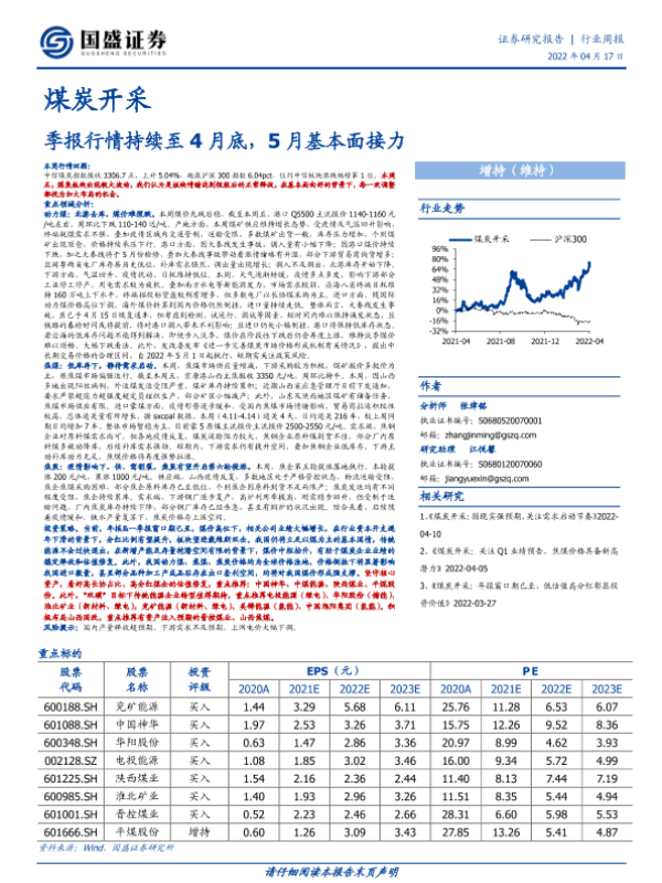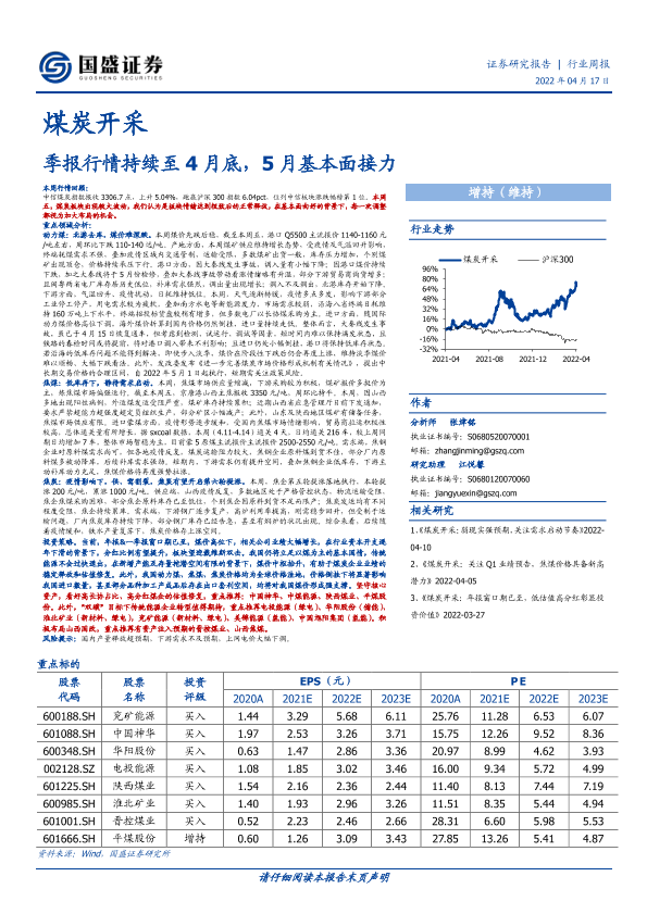 【国盛证券】【20220417】20220417-国盛证券-煤炭开采行业周报:季报行情持续至4月底,5月基本面接力-21页