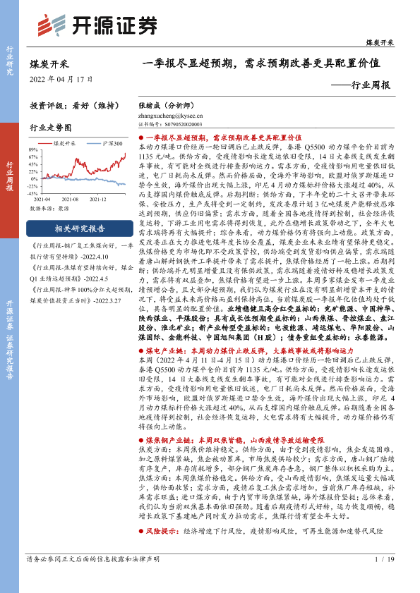【开源证券】【20220417】煤炭开采行业周报:一季报尽显超预期,需求预期改善更具配置价值-19页