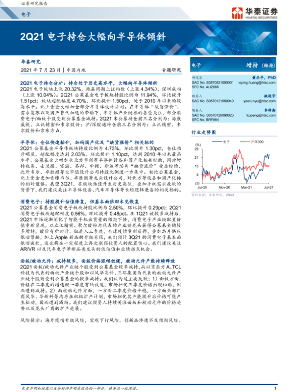 【华泰证券】【20210723】电子行业:2Q21电子持仓大幅向半导体倾斜-10页