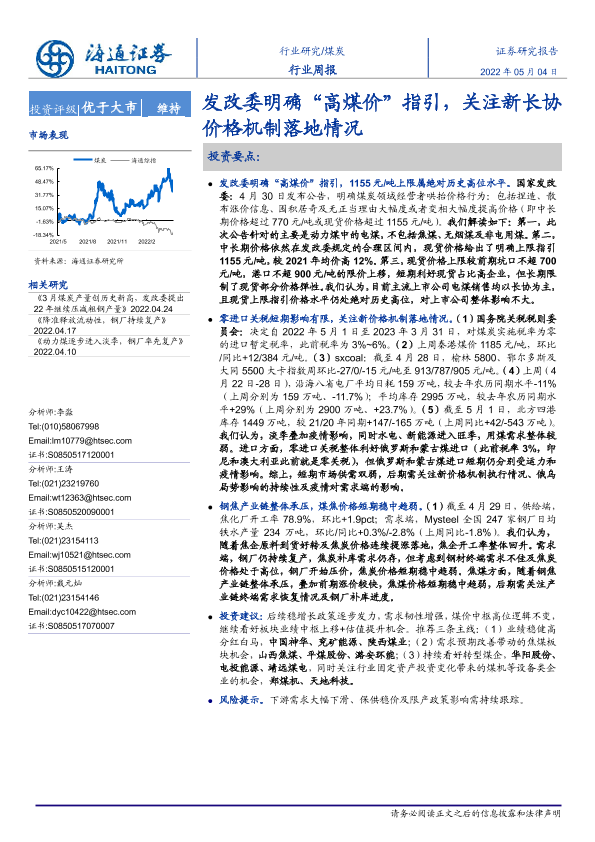 【海通证券】【20220504】20220504-海通证券-煤炭行业周报:发改委明确“高煤价”指引,关注新长协价格机制落地情况-2页