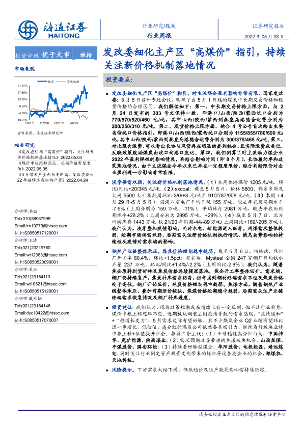 【海通证券】【20220508】20220508-海通证券-煤炭行业周报:发改委细化主产区“高煤价”指引,持续关注新价格机制落地情况-2页