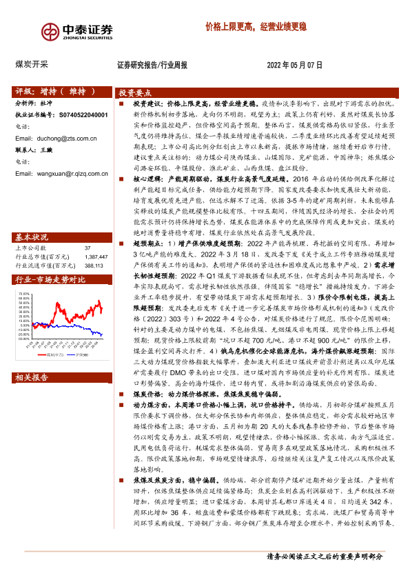 【中泰证券】【20220507】20220507-中泰证券-煤炭开采行业周报:价格上限更高,经营业绩更稳-24页