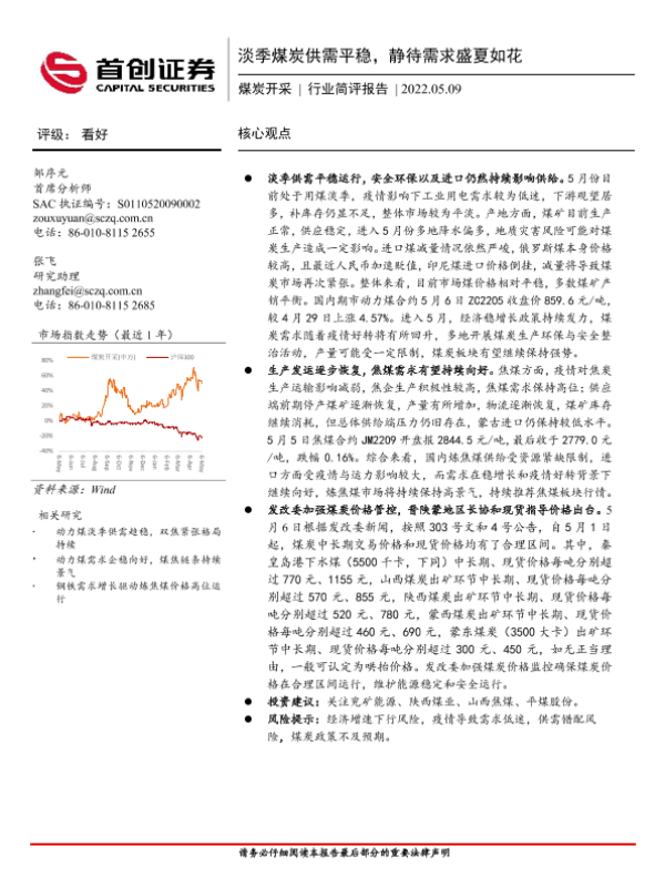 【首创证券】【20220509】20220509-首创证券-煤炭开采行业简评报告:淡季煤炭供需平稳,静待需求盛夏如花-13页