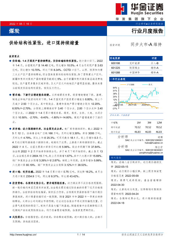 【华金证券】【20220516】煤炭行业月度报告:供给结构性紧张,进口煤持续缩量-14页