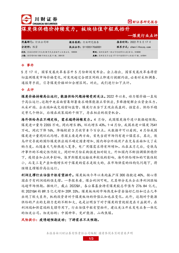 【川财证券】【20220517】煤炭保供稳价持续发力,板块估值中枢或抬升-3页