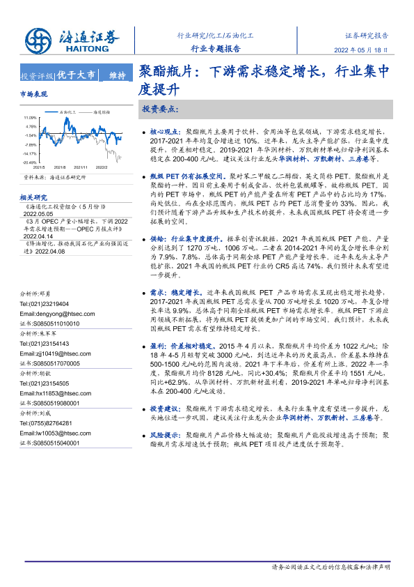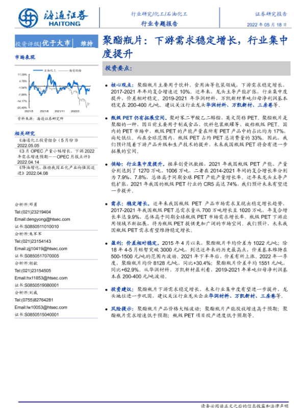 【海通证券】【20220518】石油化工行业专题报告:聚酯瓶片:下游需求稳定增长,行业集中度提升-28页