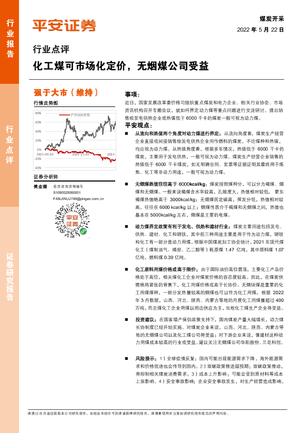 【平安证券】【20220522】煤炭开采行业点评:化工煤可市场化定价,无烟煤公司受益-2页