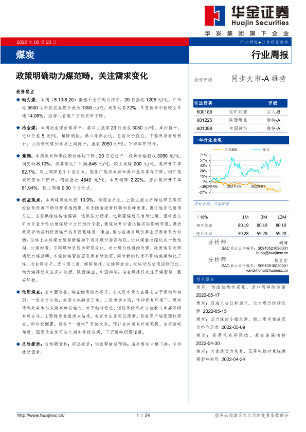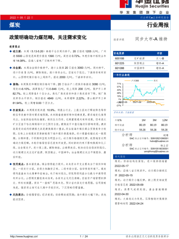 【华金证券】【20220522】煤炭:政策明确动力煤范畴,关注需求变化-24页
