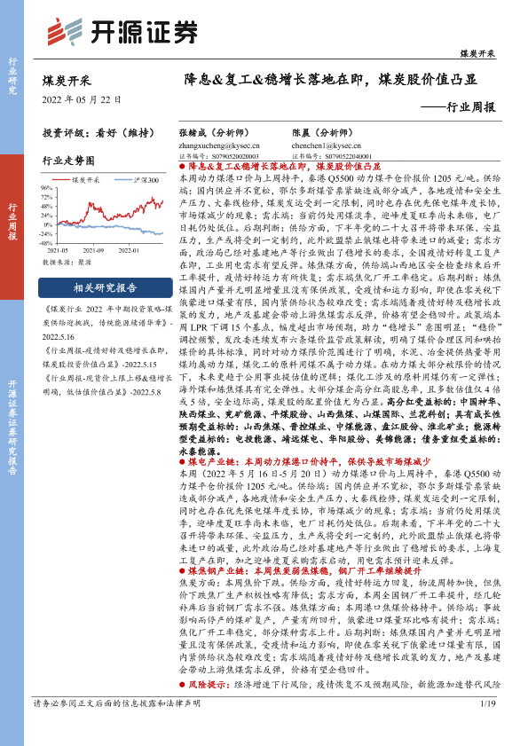 【开源证券】【20220522】20220522-开源证券-煤炭开采行业周报:降息&复工&稳增长落地在即,煤炭股价值凸显-19页