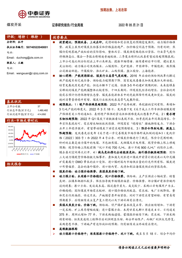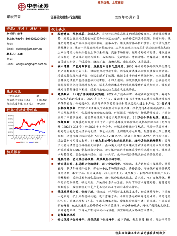 【中泰证券】【20220521】20220521-中泰证券-煤炭开采行业周报:预期改善,上攻在即-24页