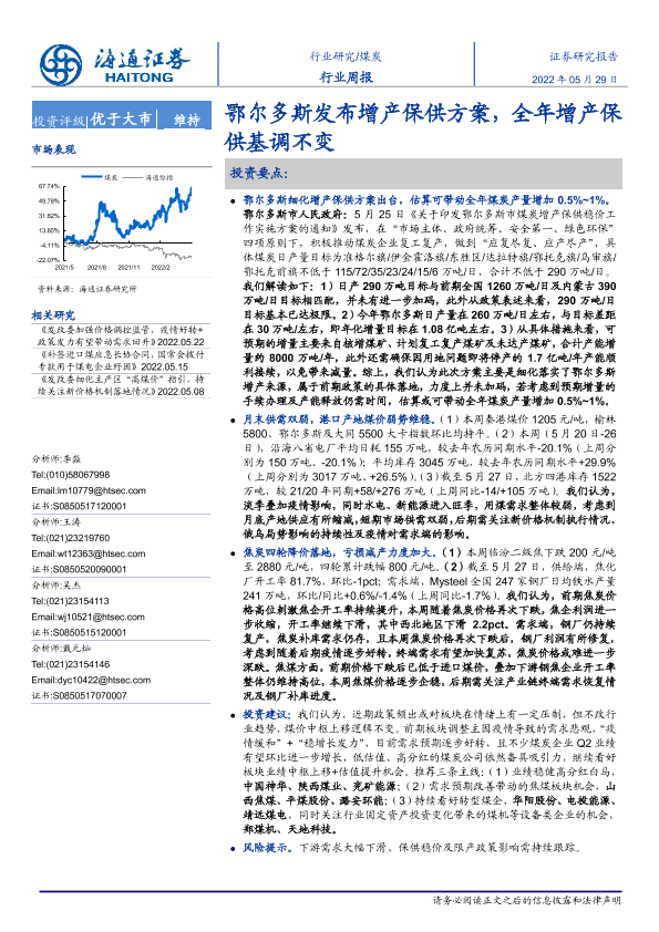 【海通证券】【20220529】20220529-海通证券-煤炭行业周报:鄂尔多斯发布增产保供方案,全年增产保供基调不变-2页