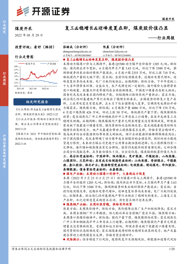 【开源证券】【20220529】20220529-开源证券-煤炭开采行业周报:复工&稳增长&迎峰度夏在即,煤炭股价值凸显-20页