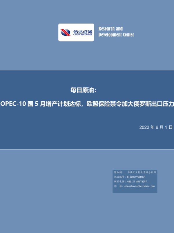 【信达证券】【20220601】每日原油:OPEC-10国 5月增产计划达标,欧盟保险禁令加大俄罗斯出口压力-5页