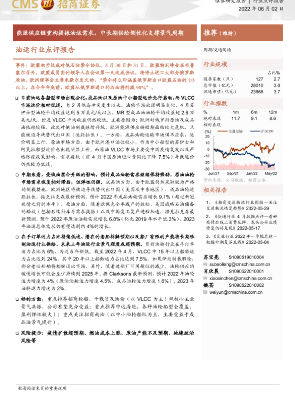 【海通证券】【20220602】油运行业点评报告:能源供应链重构提振油运需求,中长期供给侧优化支撑景气周期-6页
