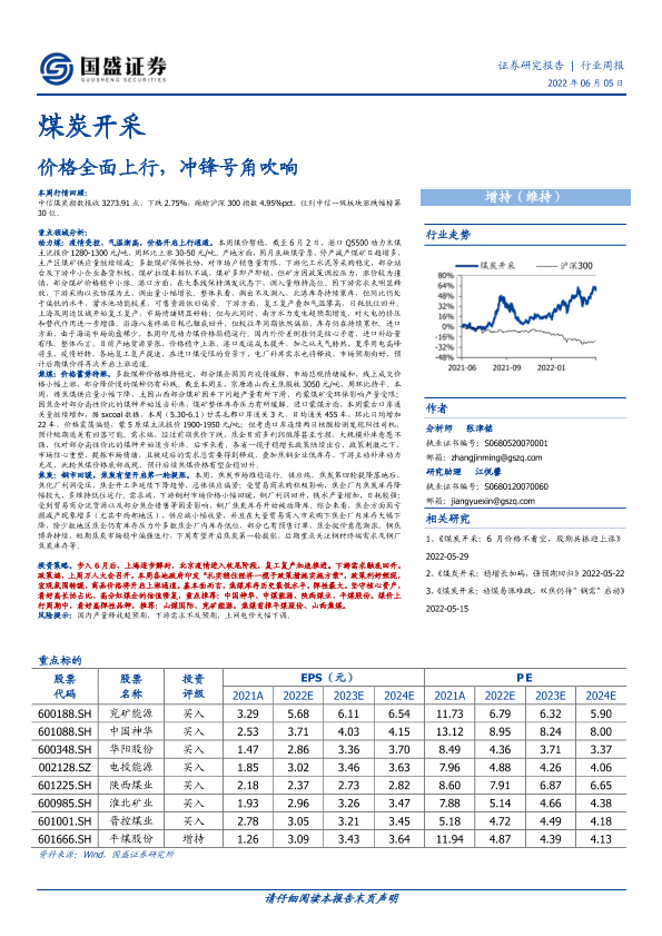 【国盛证券】【20220605】20220605-国盛证券-煤炭开采行业周报:价格全面上行,冲锋号角吹响-18页