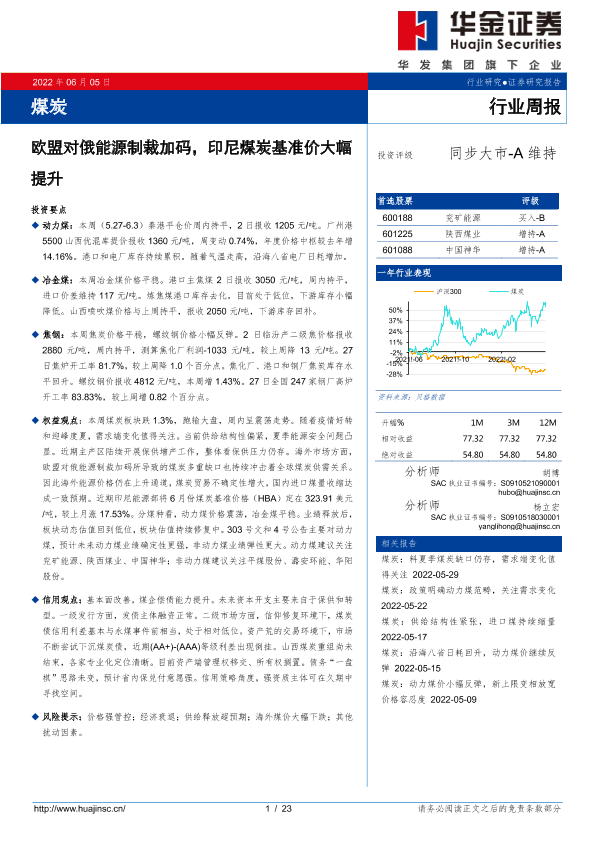 【华金证券】【20220605】20220605-华金证券-煤炭行业周报:欧盟对俄能源制裁加码,印尼煤炭基准价大幅提升-23页