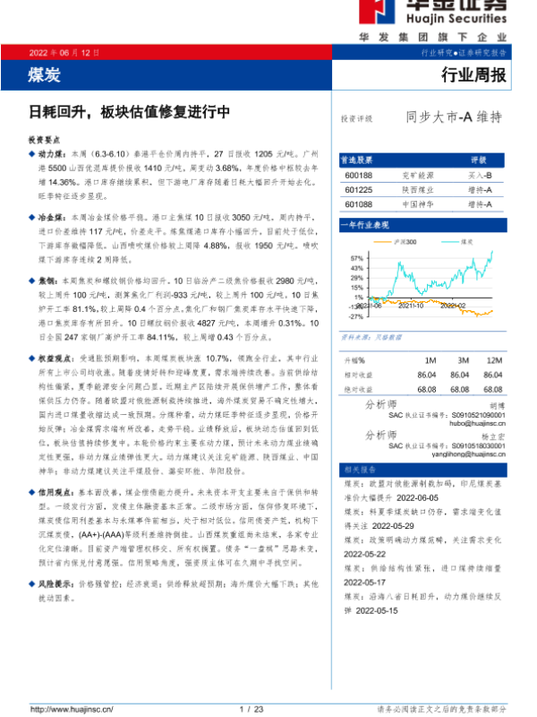 【华金证券】【20220612】20220612-华金证券-煤炭行业周报:日耗回升,板块估值修复进行中-23页