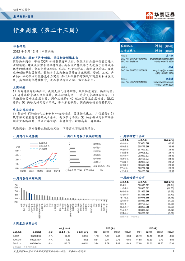 【华泰证券】【20220612】20220612-华泰证券-基础材料 能源行业周报(第二十三周)-17页