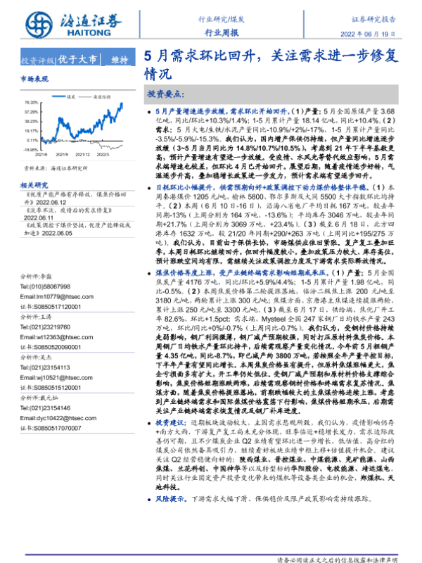 【海通证券】【20220619】20220619-海通证券-煤炭行业周报:5月需求环比回升,关注需求进一步修复情况-2页