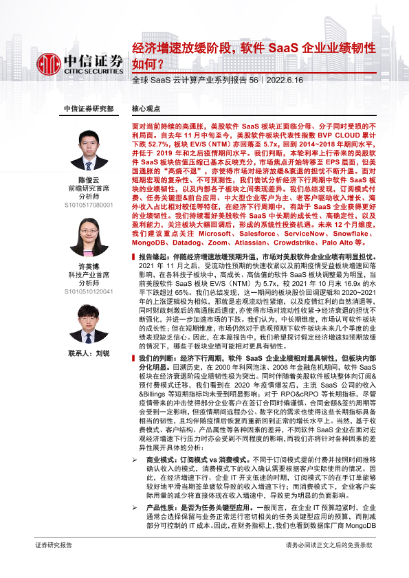 【中信证券】【20220616】经济增速放缓阶段,软件SaaS企业业绩韧性如何?-16页