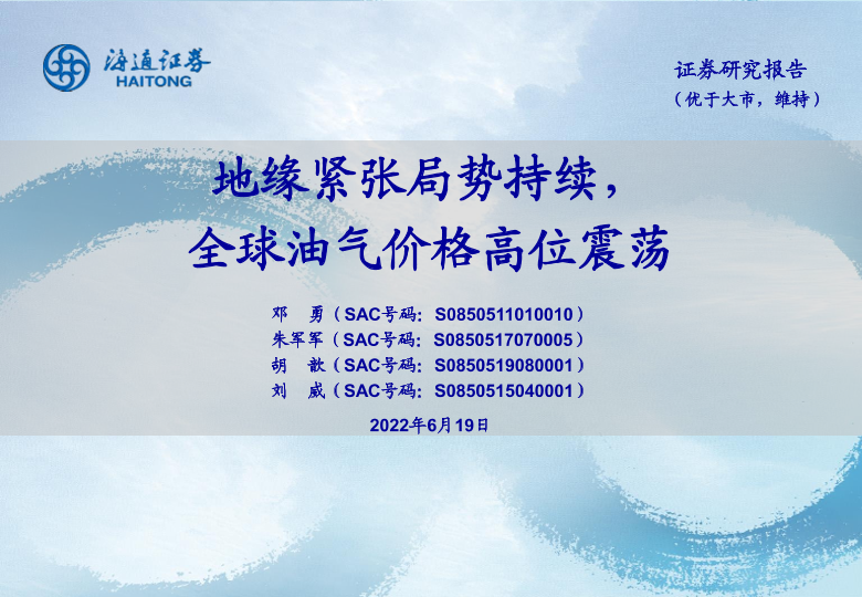 【海通证券】【20220619】石化行业:地缘紧张局势持续,全球油气价格高位震荡-37页