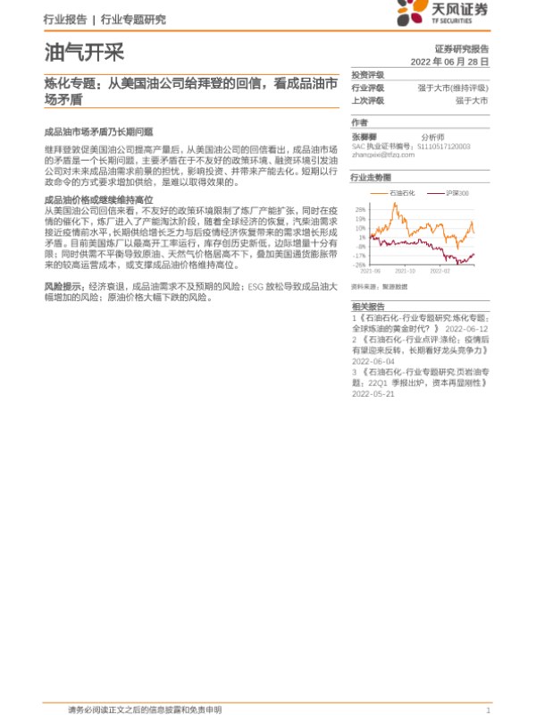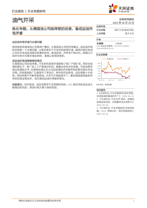 【天风证券】【20220628】油气开采炼化专题:从美国油公司给拜登的回信,看成品油市场矛盾-6页