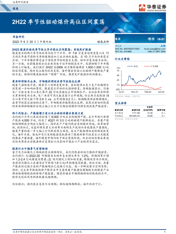 【华泰证券】【20220630】2H22季节性驱动煤价高位区间震荡-6页