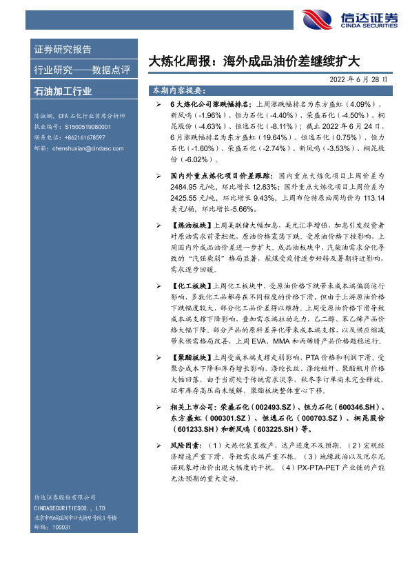 【信达证券】【20220628】大炼化周报:海外成品油价差继续扩大-18页