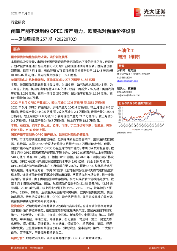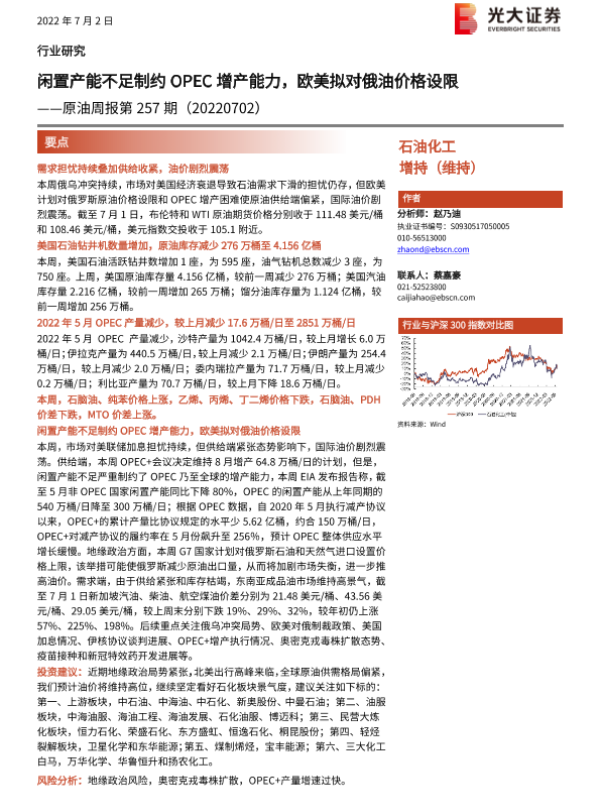 【光大证券】【20220702】20220702-光大证券-原油周报第257期:闲置产能不足制约OPEC增产能力,欧美拟对俄油价格设限-11页