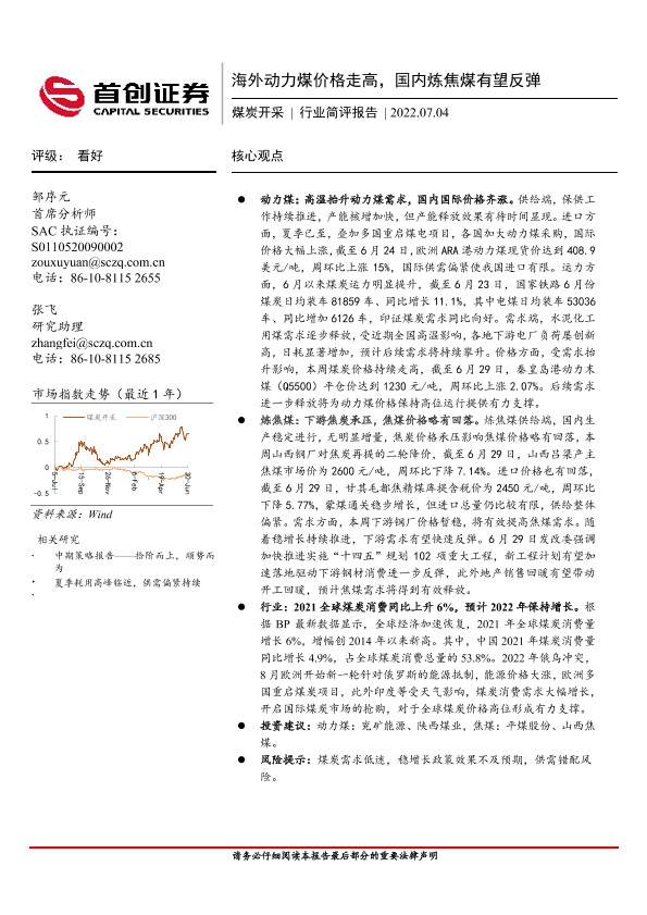 【首创证券】【20220704】海外动力煤价格走高,国内炼焦煤有望反弹-13页