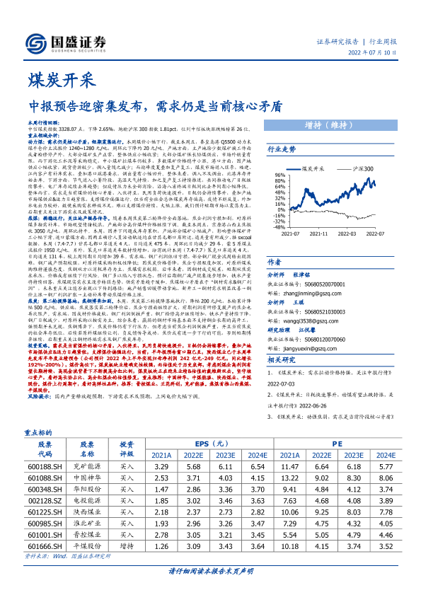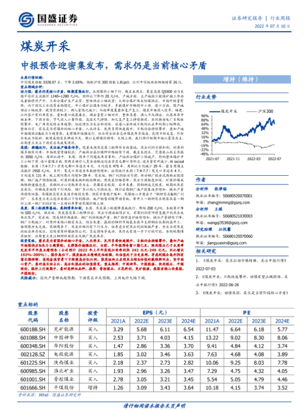 【国盛证券】【20220710】20220710-国盛证券-煤炭开采行业周报:中报预告迎密集发布,需求仍是当前核心矛盾-19页