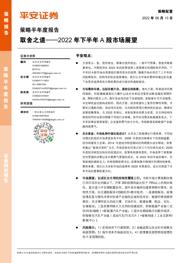 【平安证券】【20220613】策略半年度报告:2022年下半年A股市场展望,取舍之道-34页