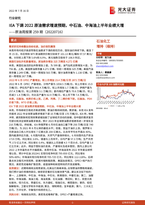 【光大证券】【20220716】IEA下调2022原油需求增速预期,中石油、中海油上半年业绩大增-14页