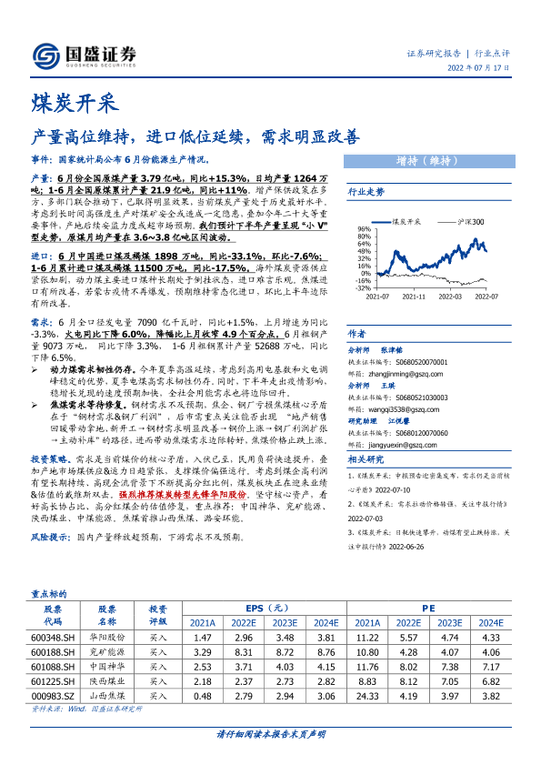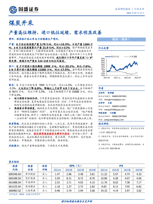 【国盛证券】【20220717】煤炭开采:产量高位维持,进口低位延续,需求明显改善-7页
