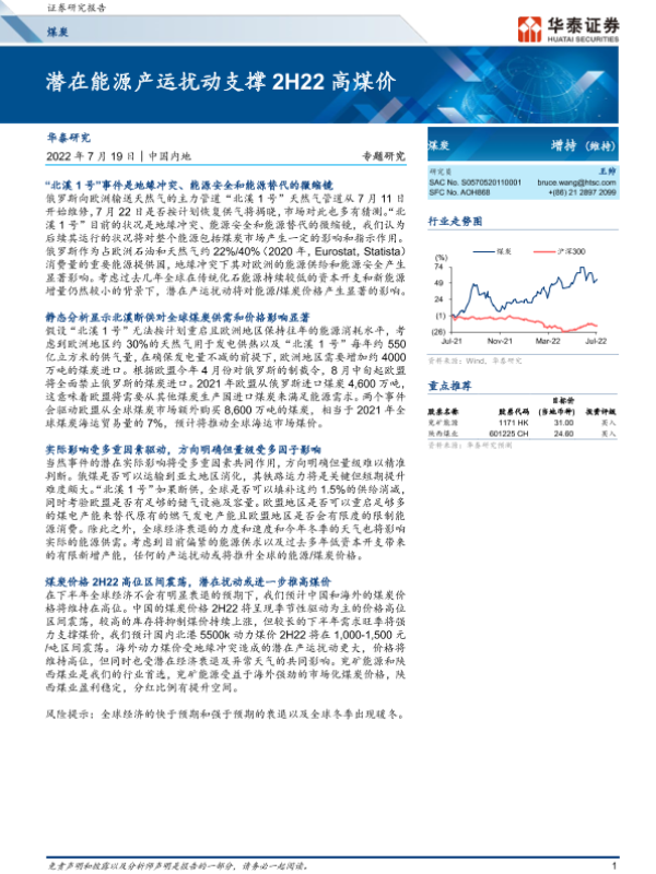 【华泰证券】【20220719】20220719-华泰证券-煤炭专题研究:潜在能源产运扰动支撑2H22高煤价-8页