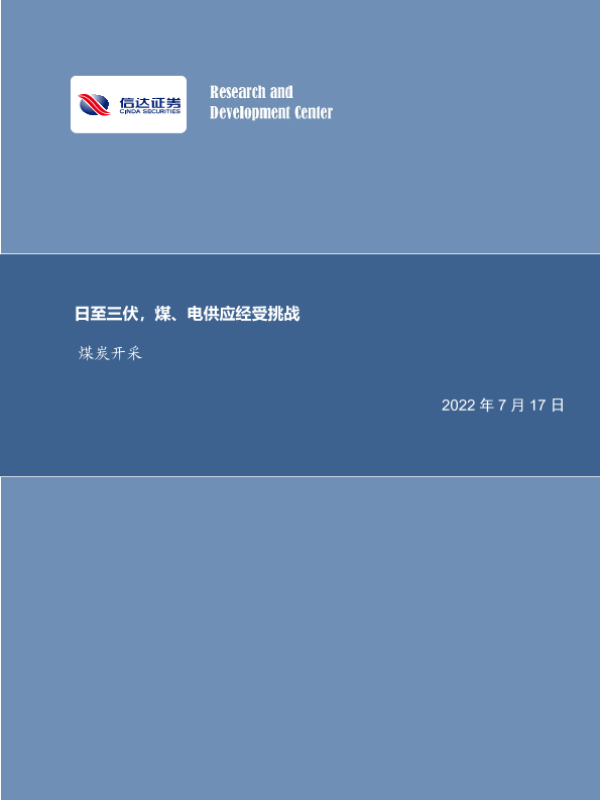 【信达证券】【20220717】日至三伏,煤、电供应经受挑战-26页