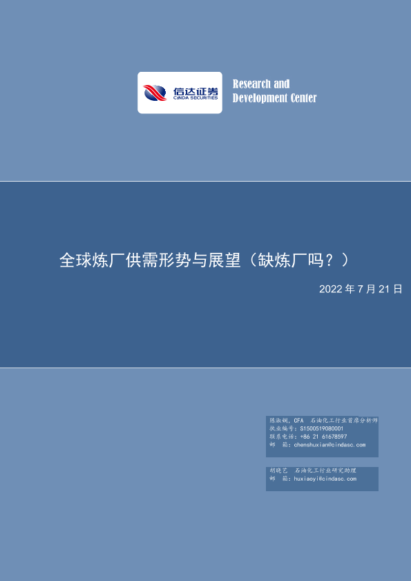 【信达证券】【20220721】全球炼厂供需形势与展望(缺炼厂吗?)-62页