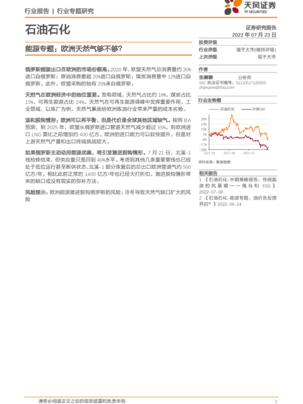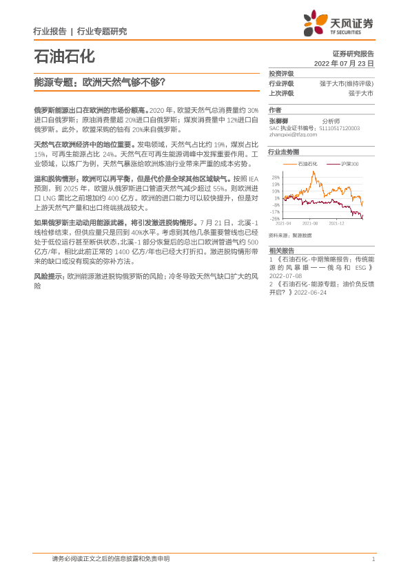 【天风证券】【20220723】石油石化能源专题:欧洲天然气够不够?-8页