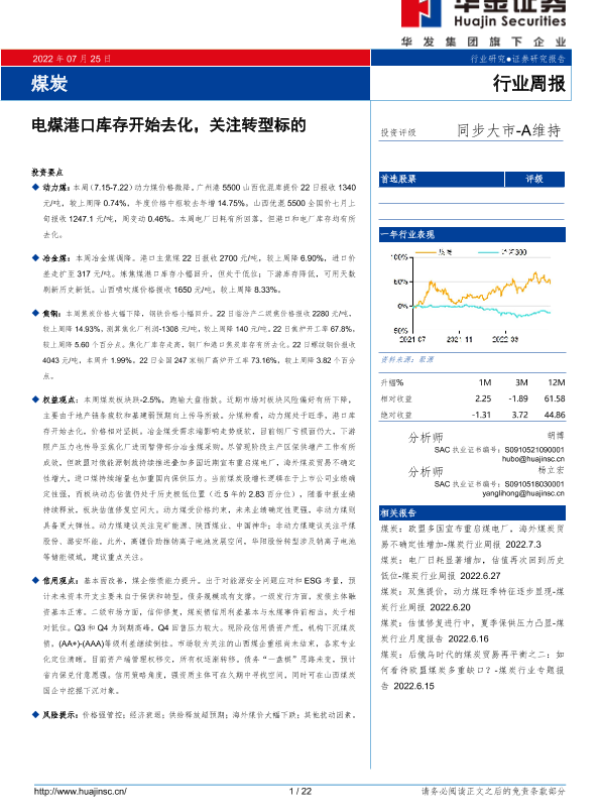 【华金证券】【20220725】20220725-华金证券-煤炭行业周报:电煤港口库存开始去化,关注转型标的-22页