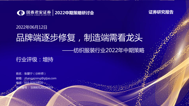 【国泰君安证券】【20220612】纺织服装行业2022年中期策略:品牌端逐步修复,制造端需看龙头-38页