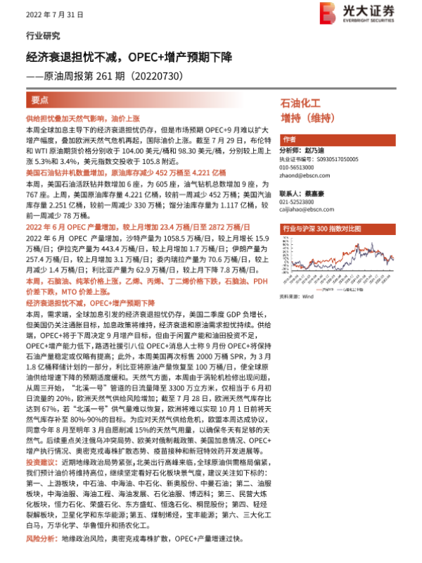 【光大证券】【20220731】20220731-光大证券-原油周报第261期:经济衰退担忧不减,OPEC+增产预期下降-14页