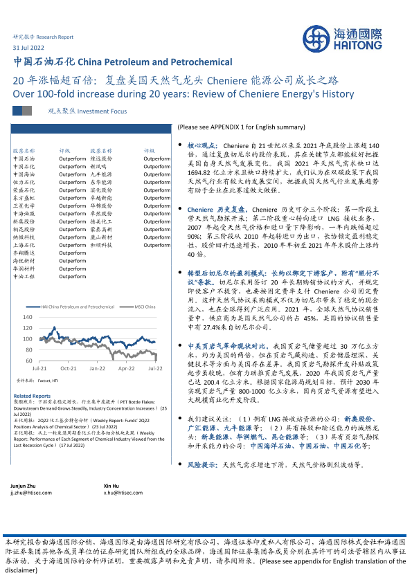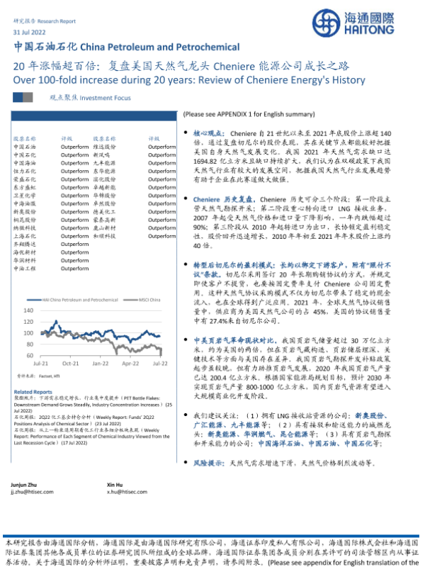 【海通国际】【20220731】20年涨幅超百倍:复盘美国天然气龙头Cheniere能源公司成长之路-18页