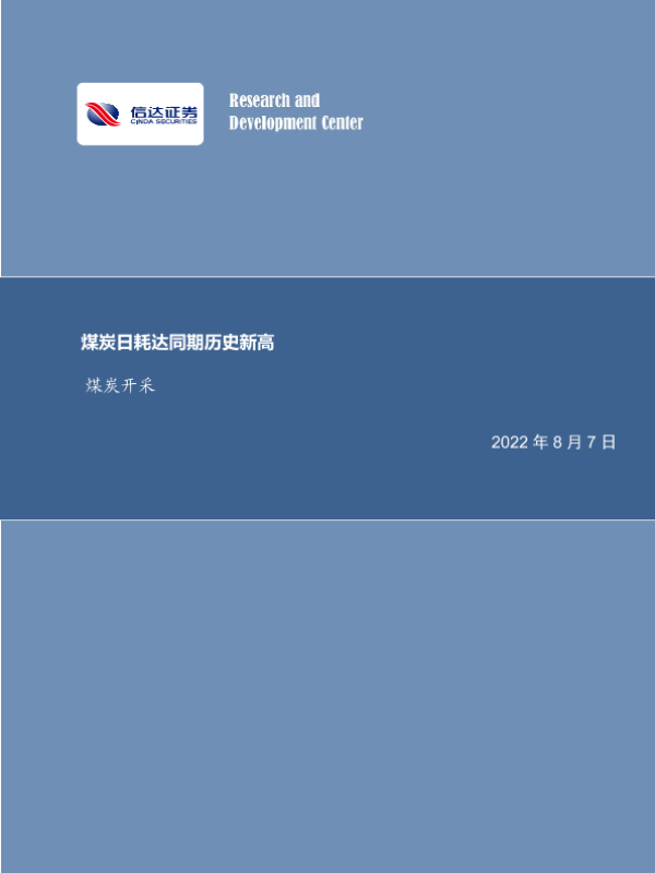 【信达证券】【20220807】20220807-信达证券-煤炭开采行业周报:煤炭日耗达同期历史新高-27页