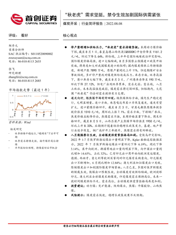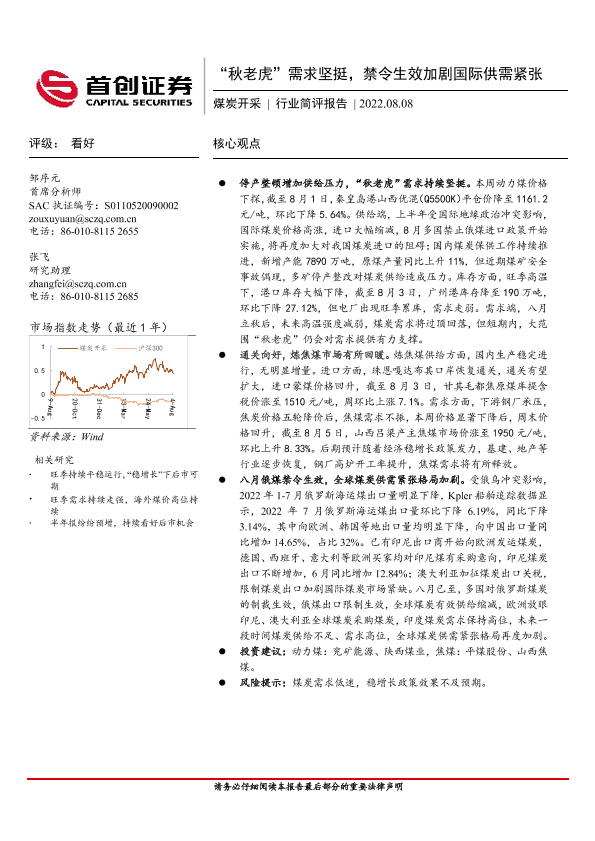 【首创证券】【20220808】20220808-首创证券-煤炭开采行业简评报告:“秋老虎”需求坚挺,禁令生效加剧国际供需紧张-12页
