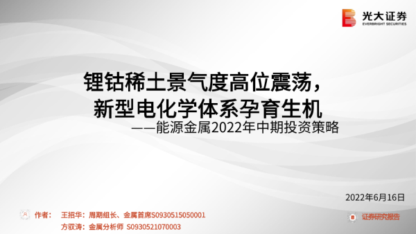 【光大证券】【20220616】能源金属行业2022年中期投资策略:锂钴稀土景气度高位震荡,新型电化学体系孕育生机-59页