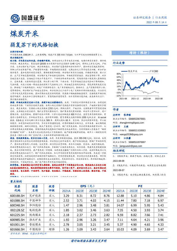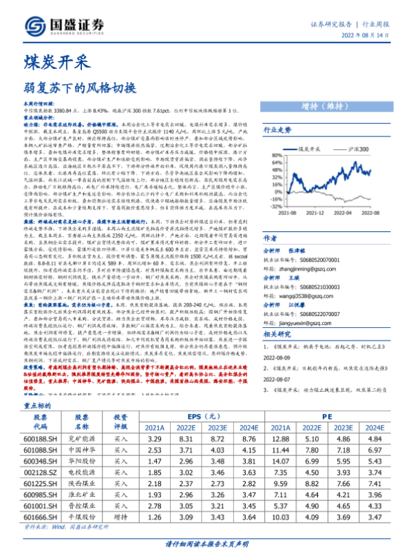 【国盛证券】【20220814】20220814-国盛证券-煤炭开采行业周报:弱复苏下的风格切换-19页