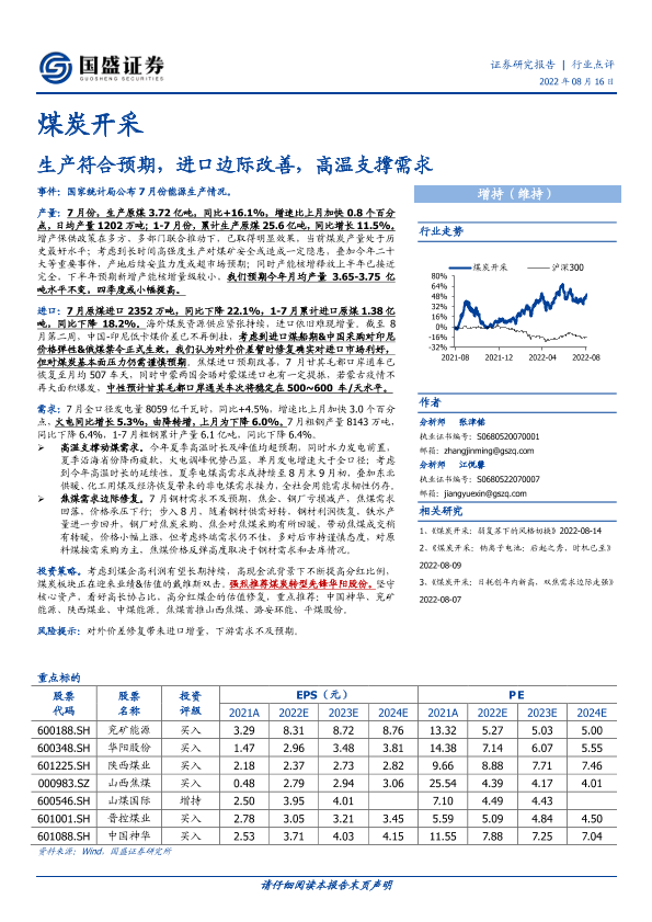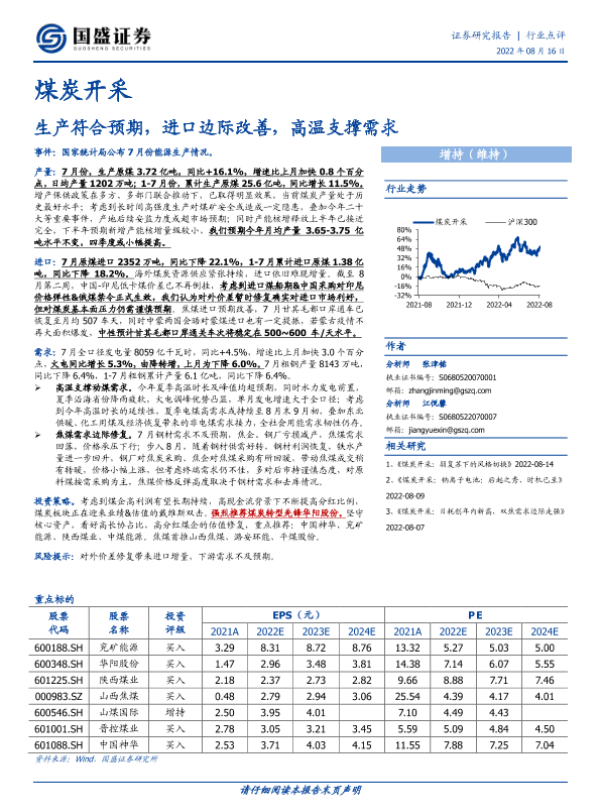 【国盛证券】【20220816】20220816-国盛证券-煤炭开采行业点评:生产符合预期,进口边际改善,高温支撑需求-8页